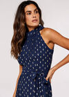 Gold Foil Halter Neck Midi Dress, Navy, large