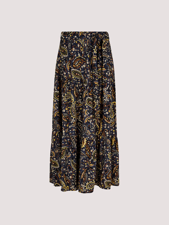 Paisley Tiered Midi Skirt, Navy, large